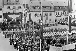 Während der Weltwirtschaftskrise erhielt die DNSAP erheblichen Zulauf. War die Mitgliederzahl mit 24.000 Mitgliedern 1925 bis Anfang 1930 mit ca. 30.000 Mitgliedern einigermaßen konstant geblieben, so konnte die DNSAP ihre Mitgliederzahl bis 1932 auf 100.000 steigern und einige Erfolge bei Kommunalwahlen erringen.[21]