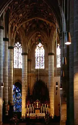 Die Deutsche Sondergotik ist ein Begriff der Baustilkunde. Aufgrund seiner starken ideologischen Färbung ist er jedoch mittlerweile umstritten.[1] Er wurde im Jahr 1913 durch das gleichnamige Buch von Kurt Gerstenberg eingeführt und bezeichnet eine Sonderform der Gotischen Architektur, die sich im 14. und 15. Jahrhundert im Heiligen Römischen Reich deutscher Nation entwickelte. Mit dem Begriff sollte die nationale Eigenständigkeit der deutschen Entwicklung gegenüber der französischen Kathedralgotik herausgestellt werden.