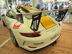 „Caritas international“, das Not- und Katastrophenhilfswerk des Deutschen Caritasverbandes, versendet Spendenbriefe, wirbt mit Beilagen in Zeitungen und Zeitschriften und schaltet Print- und Onlineanzeigen.[26] Auch über Partnerschaften mit Firmen der Privatwirtschaft lassen die Caritas und ihre Tochtereinrichtungen für sich werben. So ist beispielsweise die Platzierung des auf dem Foto rechts abgebildeten Caritas-Logos auf einem Rennauto Porsche 911 GT3 Ergebnis einer solchen Partnerschaft.