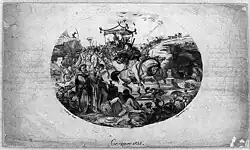 Unter den Künstlern entstand die Gepflogenheit, Neuankömmlinge an der Milvischen Brücke, dem Ponte Molle, zu empfangen, wobei der Ankommende seinen Freunden zum Einstand ein Fass Wein ausgab.[1] Im Zuge der Institutionalisierung eines Frühlingsfestes der deutschsprachigen Künstler entstand 1813/1814 die Ponte-Molle-Gesellschaft,[2][3] deren Mitglieder spaßeshalber die Umgangsformen eines Ritterordens annahmen. In Rom wurde diese Gesellschaft bald dadurch bekannt, dass sie jährlich um den 1. Mai einen karnevalistischen Festzug in die Campagna Romana zu den antiken Travertin-Steinbrüchen am Ufer des Aniene bei Tor Cervara (Torre Cervaro) bzw. Ponte Mammolo veranstaltete,[4] wo als „Cervarafest“ bzw. „Cervarofest“ oder – nach dem römischen Volksmund – als „carnevale dei Tedeschi“ ein Biwak mit „Olympischen Spielen“ abgehalten wurde. Auch wurde von Mitgliedern der Gesellschaft eine „Hilfskasse“ organisiert, die verarmte deutsche Künstler vor dem Hungertod bewahren sollte.
