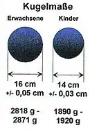 Gespielt wird mit Vollkugeln (160 mm), Jugendliche bis zur U 14 spielen mit einer 140 mm Vollkugel. Es ist gestattet, mit eigenen Kugeln anzutreten. Hierzu bedarf es eines Kugelpasses. Mit der Lochkugel darf teilweise auch gespielt werden, es gibt Ausnahmeregeln für Senioren. Dies wiederum sind landesinterne Regelungen.[6]