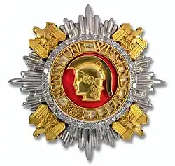 - ↑ a b Detaillierte Abbildungen der Schärpe mit Agraffe sowie des Bruststerns finden sich in: Jörg Nimmergut, Klaus H. Feder, Heiko von der Heyde: Deutsche Orden und Ehrenzeichen: Drittes Reich, DDR und Bundesrepublik, Verlage Battenberg und Gietl, 2008, ISBN 978-3-86646-032-4; S. 14f.