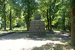 Der Friedhof ist schon sehr stark verfallen. Er macht den Eindruck eines nicht fertiggestellten Massengrabes, das von einer u-förmigen Umfassungsmauer eingegrenzt wird. Der zentrale Obelisk wird von einem Kreuz gekrönt. Ein Epitaph ist nicht vorhanden. Die Anlage steht unter Denkmalschutz.