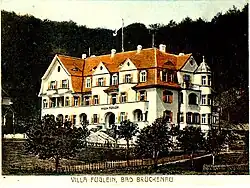 Die Villa Füglein wurde 1908 im Jugendstil von Josef Füglein, einem Brückenauer Hotelbesitzer, als zusätzliche Pension gebaut, da das schon länger betriebene benachbarte Hotel mit seinen 70 Betten zu klein geworden war. Als Pension wurde das Gebäude bis 1972 von der Familie Füglein betrieben. Anschließend befand es sich bis 2002 im Besitz des Freistaates Bayern, der es zeitweise verpachtete.[6] Mona Buchmann und Ivan Sojc kauften das Gebäude im Jahr 2002, renovierten es komplett und betreiben dort seit 2004 das Deutsche Fahrradmuseum.