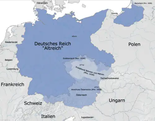 Deutsches Reich ist der Name des deutschen Nationalstaates zwischen 1871 und 1945. Anfangs nicht deckungsgleich, wurde der Name zugleich auch die staatsrechtliche Bezeichnung Deutschlands. Nach dem „Anschluss“ Österreichs im März 1938 kam die Bezeichnung „Großdeutsches Reich“ in amtlichen wie propagandistischen Gebrauch. Ein Führererlass Hitlers wies die Institutionen des Staates im Juni 1943 an, zukünftig diese Benennung zu verwenden.