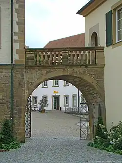 - ↑ Artikel im Neckar-Echo vom 15. August 1962, Nr. 187, S. 5 Über dem Toreingang zu Deutschhof...