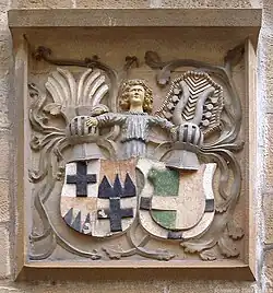 Wappenstein am Ritterhaus zeigt die historischen Besitzer der Anlage -