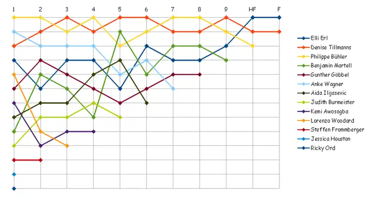 | Platz | Kandidat | Ausgeschieden am | Motto |