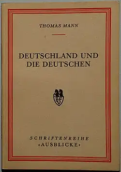 - ↑ Angaben aus: Thomas Mann: Essays. Band 5: Deutschland und die Deutschen. Kommentar, Deutschland und die Deutschen, Entstehung. Fischer, Frankfurt 1996, S. 433.