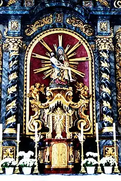 Die barocke Ausstattung stammt im Wesentlichen aus dem 17. Jahrhundert. Der Hauptaltar steht an der Ostwand des Chors, die beiden Nebenaltäre vor dem Chorbogen. Die berühmte Pietà steht in einem großen Rundbogenfeld des Hauptaltars zwischen gedrehten Säulen. Am südlichen Chorbogen ist die tonnenförmige Kanzel angebracht. Das hölzerne Kirchengestühl lässt einen Mittelgang frei.