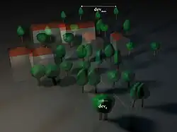 Ein übliches Problem der Stereofotografie ist die Frage nach der zu verwendenden Basisbreite. Um sie zu beantworten, muss man und messen. Die Genauigkeit von im Meterbereich ist dabei stets wichtiger, als von im Kilometerbereich (Schätzung ist ausreichend). Die Projektionsebene (Scheinfensterebene) sollte und sein. Der FoV lässt sich aus der Brennweite und der horizontalen Größe des Bildsensors bzw. des Negatives errechnen. Anhaltspunkte zur gewünschten Deviation finden sich unter Richtlinien zur Deviation.
