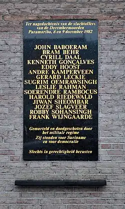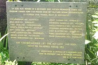 - ↑ Monument Decembermoorden in Suriname onthuld. In: waterkant.net. 9. Dezember 2009, abgerufen am 16. April 2020 (englisch).