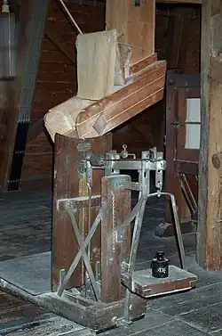 Die im deutschsprachigen Raum gebräuchliche Dezimalwaage geht auf den Benediktinermönch Friedrich Alois Quintenz (* 1774 in Gengenbach; † 1822 in Straßburg) zurück. Quintenz verbesserte die von dem Uhrmacher Jean-Baptiste Schwilgué konstruierte Dezimal-Brückenwaage, indem er die bei der Schwilgué-Dezimalwaage noch obenliegende Brücke nach unten verlegte.[4] Mit der im Jahr 1821 in Straßburg zum Patent angemeldeten Quintenz-Dezimalwaage wurde die Gewichtsbestimmung vergleichsweise großer Massen wesentlich erleichtert, denn nun musste das schwere Wägegut nicht mehr allzu hoch gehoben werden.