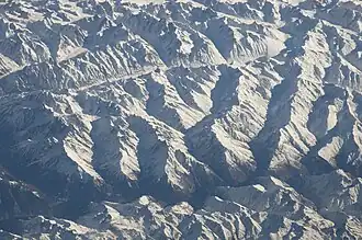 ![]() Blick aus dem All; das Dharlang-Tal ist in der oberen Bildhälfte erkennbar | ||