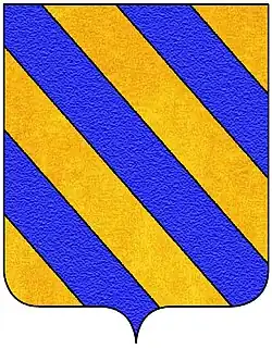 Das Wappen der Familie di Sangro ist gold mit drei blauen Balken. Ebenfalls sind auf dem Wappen eine Fürstenkrone und ein Fürstenmantel abgebildet.
