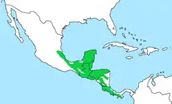 Der Vogel kommt in Wäldern und baumbestandenen Flächen im Süden Mexikos und im Westen Panamas vor.