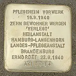 - ↑ Zur Eröffnung des neuen Erziehungs- und Pflegeheimes für Geistesschwache in Vorwerk. In: Lübeckische Blätter. 59. Jahrgang, Nr. 50, 13. Dezember 1914, S. 804–806.