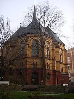 1893 erhielt die Diakonissenanstalt eine eigene Kirche, die von Friedrich Fahro nach dem Wiesbadener Programm entworfen wurde. Die neogotische Inneneinrichtung ist bis heute fast vollständig erhalten. 1908 erhielt die Kirche eine neue Orgel. 1918 wurde der Anstaltsgemeinde das Parochialrecht zuerkannt.[7]