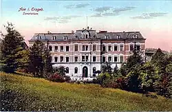- ↑ Histor. Ansichtskarte aus dem Jahr 1899 mit dem Aufdruck „Heilanstalt in Aue i. S. von Dr. Pilling und Dr. Köhler“, abgerufen am 10. August 2024.