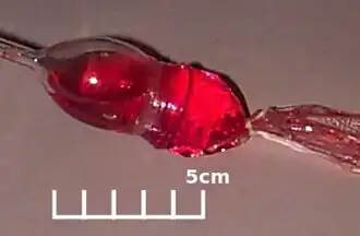 Bei einer häufig angewendeten Dialysemethode wird ein dünnwandiger Schlauch aus in Wasser gequollenem Celluloseacetat eingesetzt, der entfernt an eine Wursthaut erinnert. Ein Ende eines Schlauchstückes wird verknotet und dann mit einer Lösung befüllt, die beispielsweise Proteine oder Nukleinsäuren enthält. Danach wird auch das andere Schlauchende verknotet, so dass die Lösung eingeschlossen ist. Der Schlauch wird nun in einer sehr viel größeren Menge einer bestimmten Salz- oder Pufferlösung leicht geschwenkt und darin belassen.