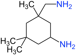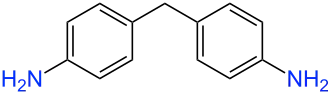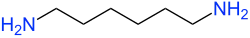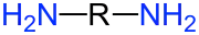 Allgemeine Struktur eines Diamins. Die primären Amino-Gruppen (NH2) sind blau markiert, R ist ein zweibindiger organischer Rest (z. B. eine para-Phenylengruppe). |