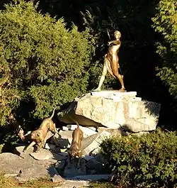 Während des Zweiten Weltkriegs gingen die Skulpturen verloren. Die Findlingsgruppe blieb erhalten. Am 10. September 2015 wurde eine Kopie der Dianagruppe enthüllt, die vom polnischen Bildhauer Ryszard Zarycki geschaffen worden war. Zunächst wurde nur die Skulptur der Diana, später die Jagdhunde aufgestellt.[1][2]