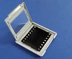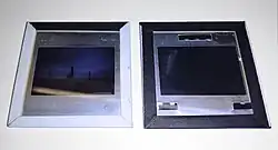 Das vorne liegende Diarähmchen hat eine Nut, ...