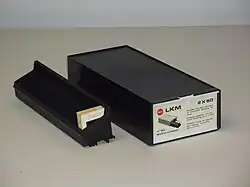 LKM-Magazine stehen in zwei Größen (60 und 80 Dias pro Magazin) zur Verfügung. Mit zwei 80-er Magazinen kann man so in einem stapelbaren Aufbewahrungskasten für zwei Magazine mit dem standardisierten Außenmaßen von 30 × 12 × 7 cm 160 Dias unterbringen, während zwei Universalmagazine maximal 100 Dias unterbringen.