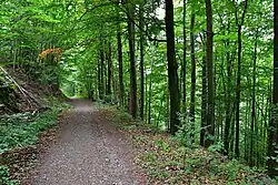 Ein alter Wanderweg, der durch das Kerngebiet der Dicken Tannen verläuft, ist heute aus Sicherheitsgründen gesperrt. Auch vom neuen Weg sind die Fichten zu sehen. Informationstafeln weisen auf das Naturdenkmal hin.