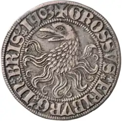 - Umschrift: + GROSSVS FRIBVRG' IN BRIS' 1503. (Die Zahl 5 ist in gotischer Form aufgeprägt.)