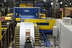 Bei der Herstellung von Metallband (Coils) unterscheidet man zwischen den Prozesslinien Querteilanlage (das Band wird quer in Blechtafeln zerschnitten) und Längsteilanlage (das Band wird längs in Streifen geschnitten).
