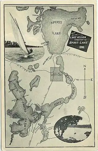 - ↑ e-ReferenceDesk, Dickinson County, Iowa - County History (Quelle: Early History of Dickinson County) Abgerufen am 23. Februar 2011