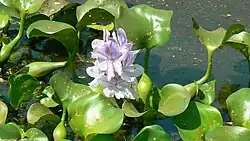 Die Pflanzenart Dickstielige Wasserhyazinthe (Pontederia crassipes Mart., Syn.: Eichhornia crassipes (Mart.) Solms) gehört seit 2018 zur Gattung Hechtkräuter (Pontederia) innerhalb der Familie der Wasserhyazinthengewächse (Pontederiaceae).[1] Die Wasserhyazinthe stammt aus dem tropischen Südamerika und wird weltweit als Zierpflanze insbesondere für Gartenteiche verwendet. Außerhalb Südamerikas ist sie weltweit ein in Gewässern wachsender Neophyt und wird zumeist als schnellwachsendes „Unkraut“ bewertet.