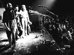 Die 3 Tornados 1980 bei einem Auftritt in der Hamburger Markthalle (von links nach rechts: Thews, Krank, Rating)