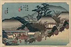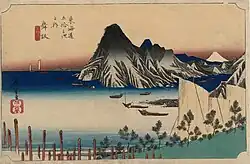 - ↑ Meiji-zeitliche Farbholzschnitte des Hoeidō-Tōkaidō von einem unbekannten Verleger auf Rare Posters, abgerufen am 28. Oktober 2014. (englisch)