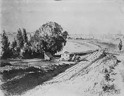 - ↑ Hugo von Tschudi: Menzel, Adolph von. In: Ausstellung deutscher Kunst aus der Zeit von 1775–1875 in der Königlichen Nationalgalerie, Berlin 1906. F. Bruckmann, München 1906, S. 376 (Textarchiv – Internet Archive – Nr. 1144: Die Berlin-Potsdamer Bahn, mit Abbildung).