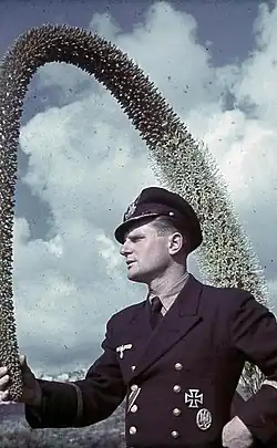 Bis November 1943 wurde die „Deutsche Wochenschau“ im Hauptgebäude der Ufa im Zentrum von Berlin in der Krausenstraße fertiggestellt und synchronisiert. Als im November 1943 das Gebäude durch alliierte Bombenangriffe schwer beschädigt worden war, wurde die Wochenschauarbeit in den Keller und ins Nebengebäude verlegt. Anfang Juni 1944 wurde die gesamte Wochenschauherstellung außerhalb Berlins nach Buchhorst in Baracken verlagert. Nachdem ab Ende Dezember 1944 (ab Nr. 746) die letzten Ausgaben der Deutschen Wochenschau teilweise nur noch unregelmäßig in die wenigen erhalten gebliebenen Lichtspielhäuser kamen, endete ihre Produktion am 22. März 1945 mit der Kinofassung der Nr. 755. Diese letzte Ausgabe zeigte u. a. den letzten öffentlichen Auftritt Adolf Hitlers im Garten der Neuen Reichskanzlei, knapp einen Monat vor seinem 56. Geburtstag, bei der er u. a. zwanzig angetretenen Hitlerjungen das Eiserne Kreuz verlieh. Lange Zeit war davon ausgegangen worden, dass diese Aufnahmen am Geburtstag Hitlers, dem 20. April 1945, gemacht worden wären. Später stellte sich heraus, dass diese bereits im Monat vorher entstanden waren.[1][2] Wegen der im Wesentlichen zusammengebrochenen Transport- und Postverbindungen war es ohnehin kaum noch möglich, die in Berlin gefertigten Kopien der Wochenschau in alle noch unbesetzten Gebiete des Deutschen Reiches zu befördern. So hatte z. B. schon am 23. Januar 1945[3] die Reichsbahn den zivilen Schnell- und Eilzugverkehr komplett eingestellt.