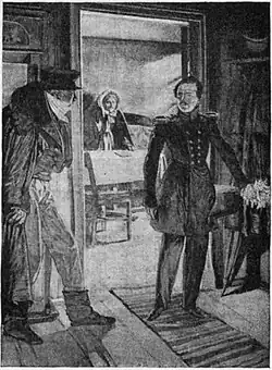George liebt die Fürstin immer noch, lässt nicht locker und startet einen weiteren Annäherungsversuch. Der Ehemann der Fürstin interessiert sich geschäftlich für einen gewissen Beamten Krassinski. Die Romanhandlung gerät zur Posse. George stöbert seinen Intimfeind auf (siehe Abbildung rechts) und beordert ihn in den Salon seiner angebeteten Verotschka.