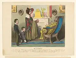 Edgar Degas dürfte Honoré Daumiers Zeichnung aus der Serie „Locataires et propriétaires“ („Mieter und Vermieter“), erschienen in der Zeitschrift Le Charivari vom 26. Mai 1837, wohl noch vage im Kopf gehabt haben, als er mit der Bildkomposition begann. Das augenfälligste Verbindungsglied ist der Lehnstuhl des Onkels. Degas war ein Bewunderer Daumiers und sollte später noch weitere Lithographien Daumiers als Grundlage seiner Werke heranziehen.[2]