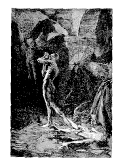 - „Ich bin schmutzig. Die Läuse zerfressen mich. Die Säue erbrechen sich, wenn sie mich sehen. Der Krusten und der Grind der Lepra haben meine Haut mit Schuppen und gelblichem Eiter bedeckt. Ich kenne das Wasser der Flüsse nicht, nicht den Tau der Wolken. Auf meinem Nacken wächst wie auf einem Misthaufen ein gewaltiger Pilz mit doldentragenden Stengeln. Ich sitze auf einem unförmigen Möbel und habe meine Glieder seit vier Jahrhunderten nicht bewegt.“ (4. Gesang, 4. Strophe)