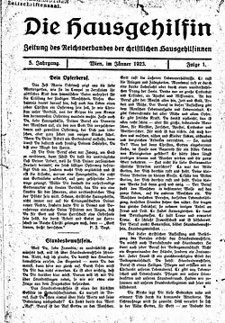 Die Hausgehilfin war eine österreichische Monatszeitschrift, die zwischen 1919 und 1969 in Wien erschien. Eine Unterbrechung der Herausgabe gab es zur Zeit des Nationalsozialismus und der Nachkriegszeit von 1938 bis 1959. Sie führte zuerst den Nebentitel Zeitung des Reichsverbandes der Christlichen Hausgehilfinnen, ab 1928 Zeitung des Reichsverbandes der Christlichen Hausgehilfinnen Österreichs und danach bis 1938 Organ des Christlichen Verbandes der Weiblichen Hausbediensteten in Wien. Die Fortsetzung der Zeitschrift war von 1970 bis 1979 Die Hausangestellte.[1]