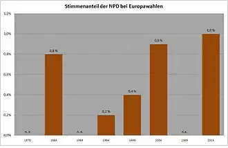 In den Jahren nach ihrer Gründung erzielte die NPD einige Wahlerfolge und war von 1966 bis 1972 in zeitweise sieben deutschen Landesparlamenten vertreten. Bei der Bundestagswahl 1969 verfehlte sie mit 4,3 % der Stimmen relativ knapp den Einzug in den Bundestag. Ab den frühen 1970er Jahren verlor sie stark an Bedeutung und verfügte nur noch über kommunale Mandate. Die Kooperation mit der DVU führte die Partei zunächst nicht aus der politischen Bedeutungslosigkeit, bis sie in den 2000er Jahren in Sachsen und Mecklenburg-Vorpommern erneut in Landtage gewählt wurde, wo sie jeweils zwei Legislaturperioden vertreten blieb. Aufgrund des Wegfalls aller Sperrklauseln bei der Europawahl 2014 gelang es ihr mit 1,0 % der Stimmen, einen Vertreter ins Europaparlament zu entsenden. Inzwischen gingen alle diese Mandate wieder verloren.