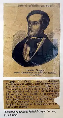 Als der Dresdner Maiaufstand von 1849, an dem sich Wagner aktiv beteiligte, zerschlagen worden war und der steckbrieflich verfolgte Wagner in Zürich Asyl gefunden hatte, konkretisierte er seine Vorstellungen und brachte weitere Gedanken zu Papier, auch in der Hoffnung, damit Geld für seinen Unterhalt verdienen zu können. Für die darauffolgende Schrift Die Kunst und die Revolution bekam er immerhin von einigen Rezensenten Beifall und vom Leipziger Verleger Otto Wigand ein stattliches Honorar, was ihn nach eigenen Aussagen zur weiteren schriftstellerischen Tätigkeit ermutigt habe. Er schrieb in dieser Zeit auch Briefe, u. a. an Franz Liszt und Theodor Uhlig, in denen er seinem „revolutionären Spleen“ freien Lauf ließ, so in einem Brief vom 22. Oktober 1850 an Uhlig: