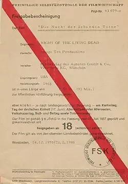 - ↑ Freigabebescheinigung für Die Nacht der lebenden Toten. Freiwillige Selbstkontrolle der Filmwirtschaft (PDF; Prüfnummer: 232953).
