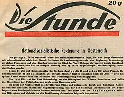 Die Stunde war eine österreichische Tageszeitung, die vom 2. Februar 1923 bis 13. März 1938 erschien.[3] Herausgeber war Imre Békessy. Die Redaktion und der Verlagssitz befand sich im Verlagshaus Canisiusgasse 8–10, 1090 Wien. Gedruckt wurde die Zeitung von der Johann Nepomuk Vernay Druckerei- und Verlags AG[3] und Eigentümerin war die Kronos-Verlag AG.[4]
