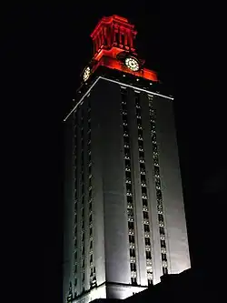 - Immer wenn die Footballmannschaft Texas Longhorns ein Spiel gewonnen hatte, wurde die Turmspitze mit starken roten Scheinwerfern angestrahlt, was sie zweifellos wie ein enorm erigiertes männliches Glied aussehen ließ, einen ekstatischen Phallus...[8]