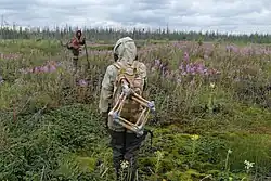 Als Putkin und Kirsta im Fluss Lachse[13] fischen, kommt es zu einem Unfall. Putkin kann den Popen im letzten Moment vor dem Ertrinken retten. Die beiden entwickeln eine merkwürdige Beziehung zueinander. Bei einer anderen Gelegenheit, kann Kirsta Putkin sogar ein Gebet für einen selbst gebrannten Kronsbeerenschnaps entlocken. Die Gruppe erholt sich bei dem Eremiten. Nadeshna kocht Blinis und Rosolniks,[14] während Katja in der Taiga Wölfe und Schneehasen jagt. Dann stellt sich heraus, dass es sich bei einem der erschossenen Wölfe um einen Hund handelt. Dies wiederum ist ein klares Indiz auf die Anwesenheit von Menschen.