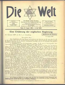 Die Zeitschrift Die Welt, gegründet von Theodor Herzl im Mai 1897[1] in Wien, wurde in der Zeit von 1897 bis 1914 zum Zentralorgan der Zionistischen Bewegung.