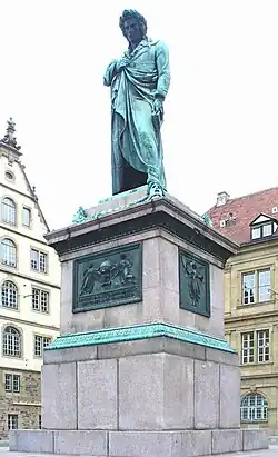 Viele Jahrzehnte später erhält ein dänischer Bildhauer aus Deutschland den Auftrag, eine Statue des berühmtesten Sohnes der Stadt Marbach zu schaffen. Das Metall dazu stammt von jener Glocke, die als Schrott verkauft und danach eingeschmolzen worden war.