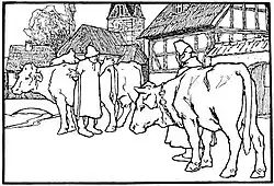 Bauer Hans lässt seine Frau Trine in seiner Abwesenheit die drei Kühe verkaufen, aber nicht für unter zweihundert Taler, sonst will er sie verprügeln. Der Viehhändler hat kein Geld dabei und lässt ihr eine Kuh zum Pfand. Der wütende Mann will sie schonen, wenn er jemand noch dümmeren fände. Auf der Straße fährt eine Frau stehend im Wagen, um die Tiere weniger anzustrengen. Er behauptet, er sei vom Himmel gefallen, dort habe ihr Mann keine Kleider. Sie holt ihm ihr Geld und sagt es auch ihrem Sohn, der den Himmelsboten suchen geht und ihm sein Pferd schenkt, damit er schneller in den Himmel zurückkehren kann. Der reitet zufrieden heim.